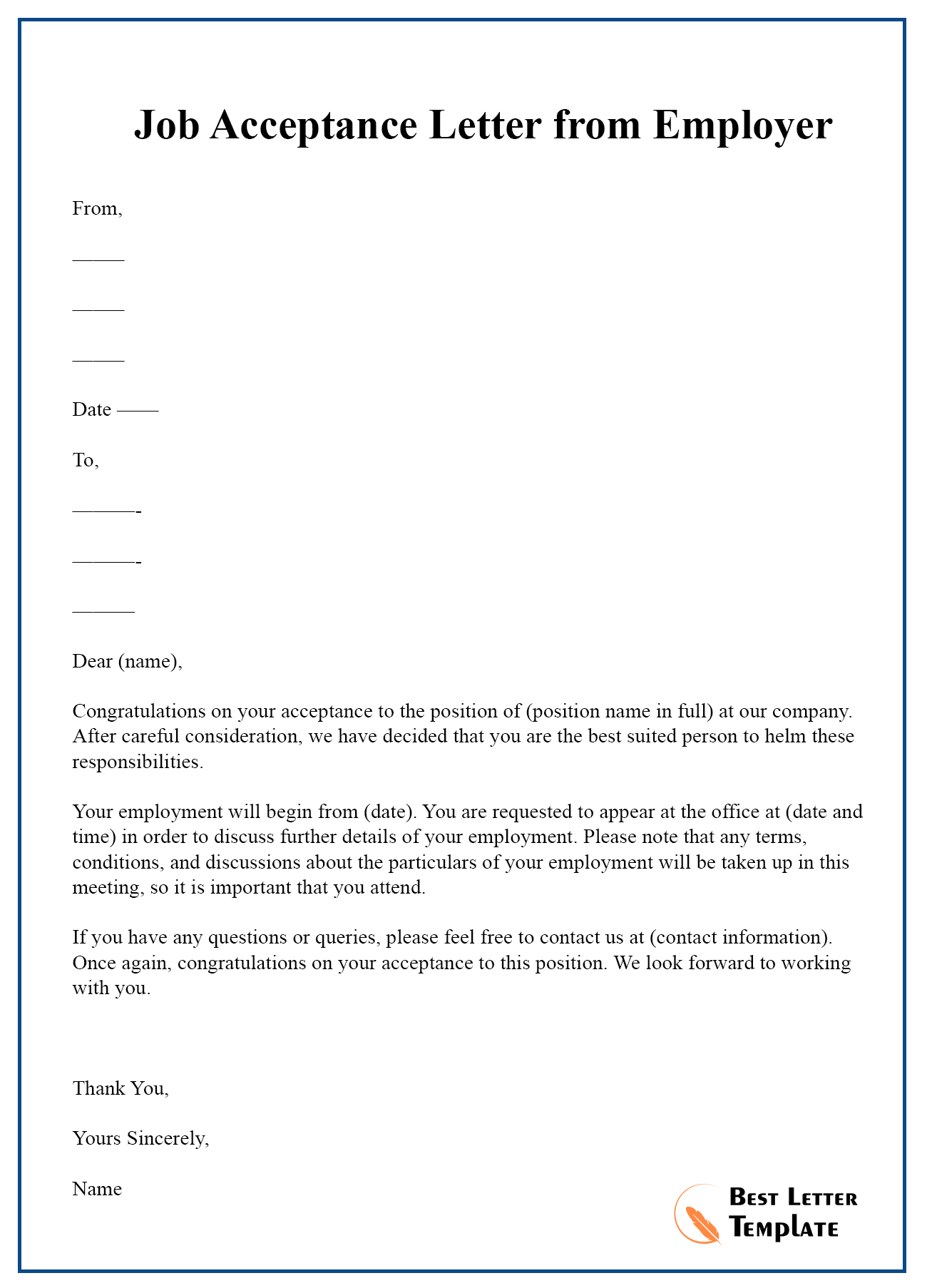 Employment Acceptance Letter Template | Word & PDF