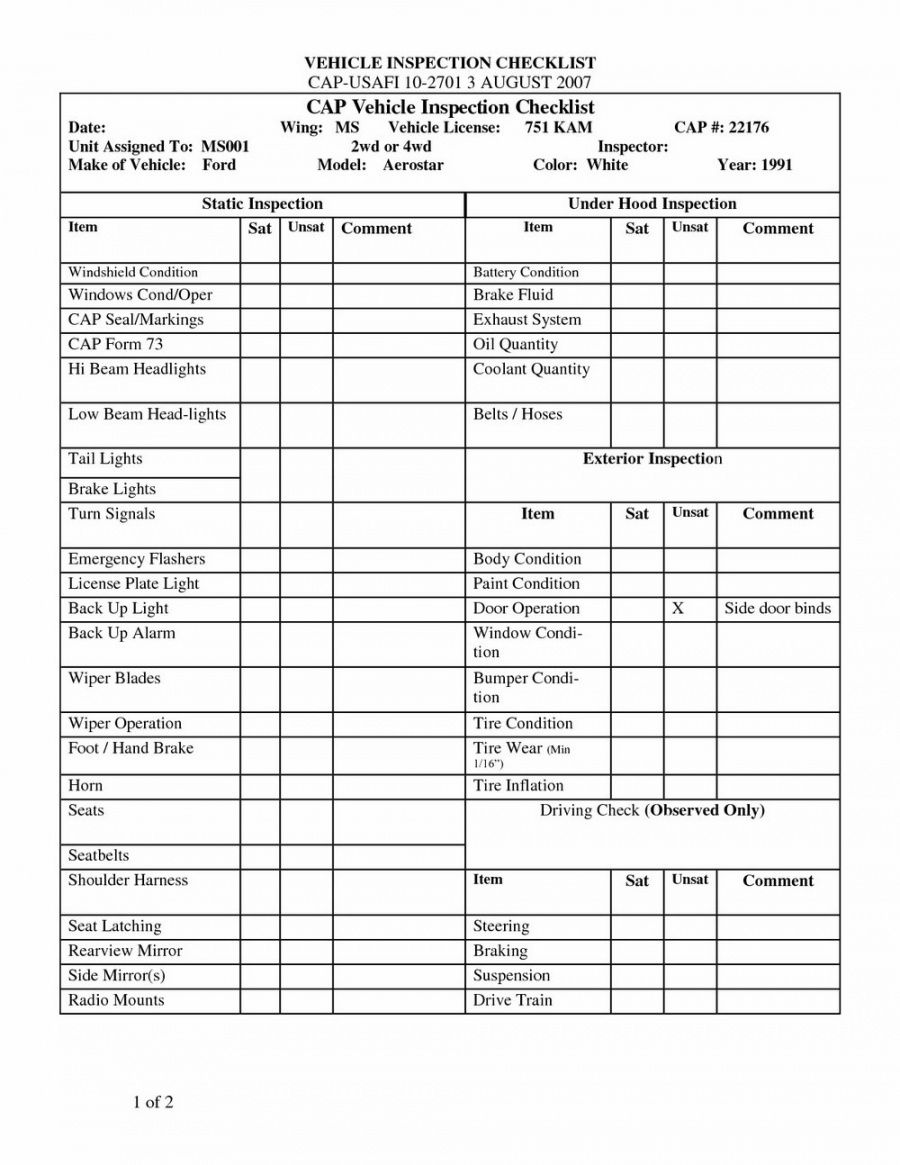 Printable Vehicle Inspection Form Template – UVXT