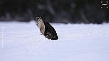 The swarm first takes the shape of a rabbit's head with long ears and then transforms into a side-on view of the animal.