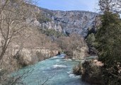 Le fort débit de l'eau de la source de Fontaine-de-Vaucluse attire les promeneurs