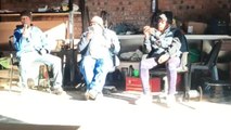 Noticing he’s distracted, his coworker on a ladder behind him smashes a tube light on the floor, startling the man and causing him to drop his phone.