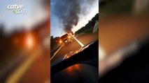 00:20A motorista parou o caminhão e, ao descer, percebeu que o fogo havia se iniciado.