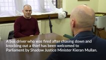 Bus driver sacked for knocking out thief welcomed to Parliament