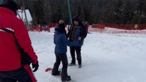 While the landing looks a bit gnarly, ‘the biscuit’ clearly knew what he was signing up for and went ahead with the trick anyway. WooGlobe Ref : WGA365535 For licensing and to use this video, please email licensing@wooglobe.com
