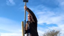"We were sitting in a pub after a gig when the gentleman in the video, named James ‘the biscuit’ Boland, demonstrated a practiced landing by jumping from a pub stool," the filmer, Benjamin, told WooGlobe. "It’s his party trick. He used to be a professional jockey."