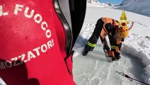 Spettacolare esercitazione nel lago di Fedaia ghiacciato per i sommozzatori dei vigili del fuoco