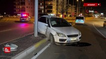 Aksaray'da kaza meydana geldi: Otomobil ağaca ve direğe çarptı